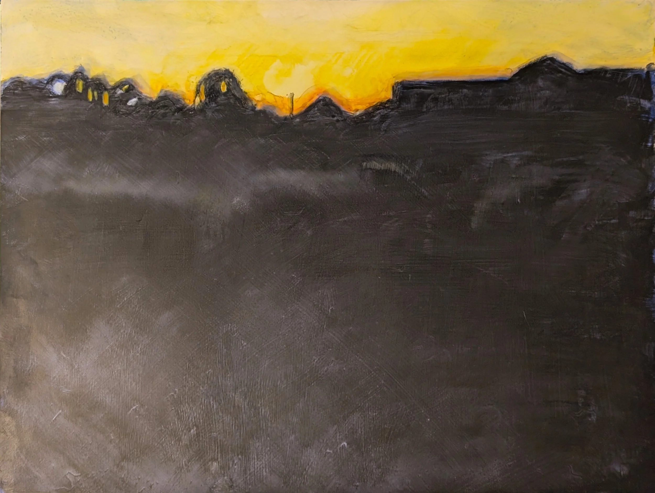 Shelter - oil stick on wood panel, 24” x 32”