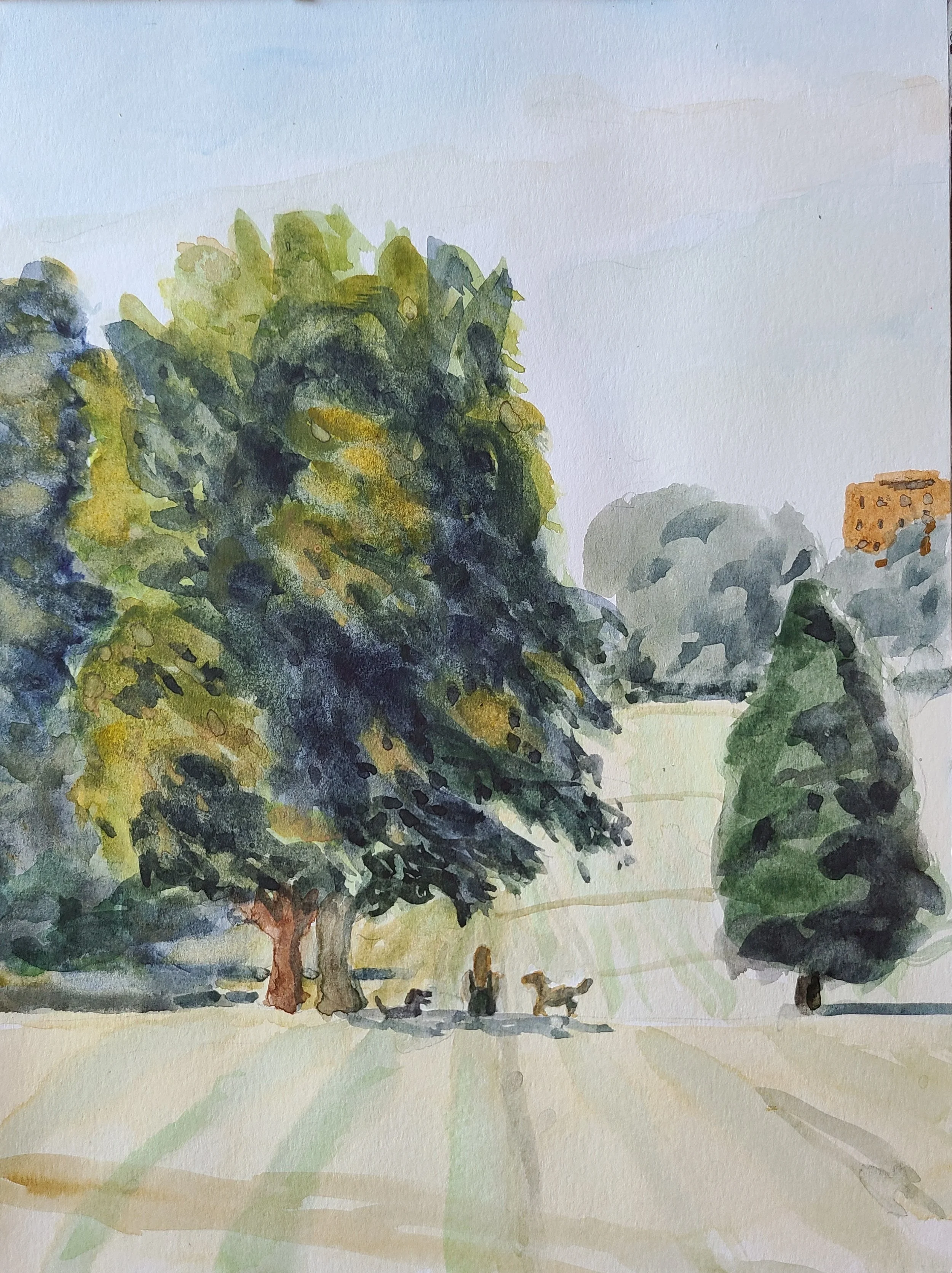 Distant Trees, Loose Park - July 30, 2022 - watercolor, 9" x 12"